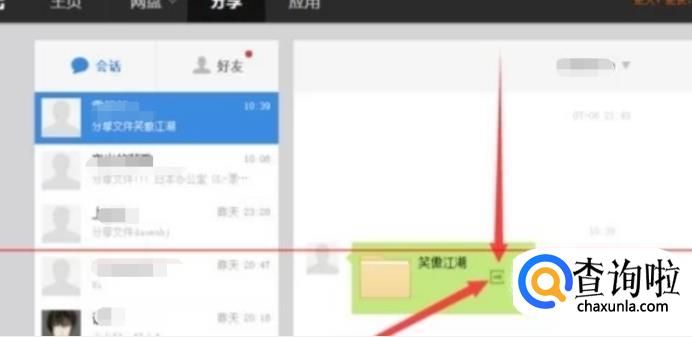 在与好友聊天记录中找到你想下载的文件点击下载标号即可,如图所示,这样文件就下载下来啦。