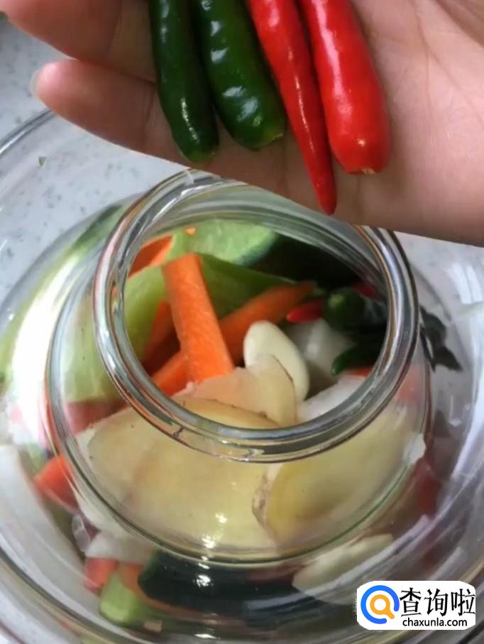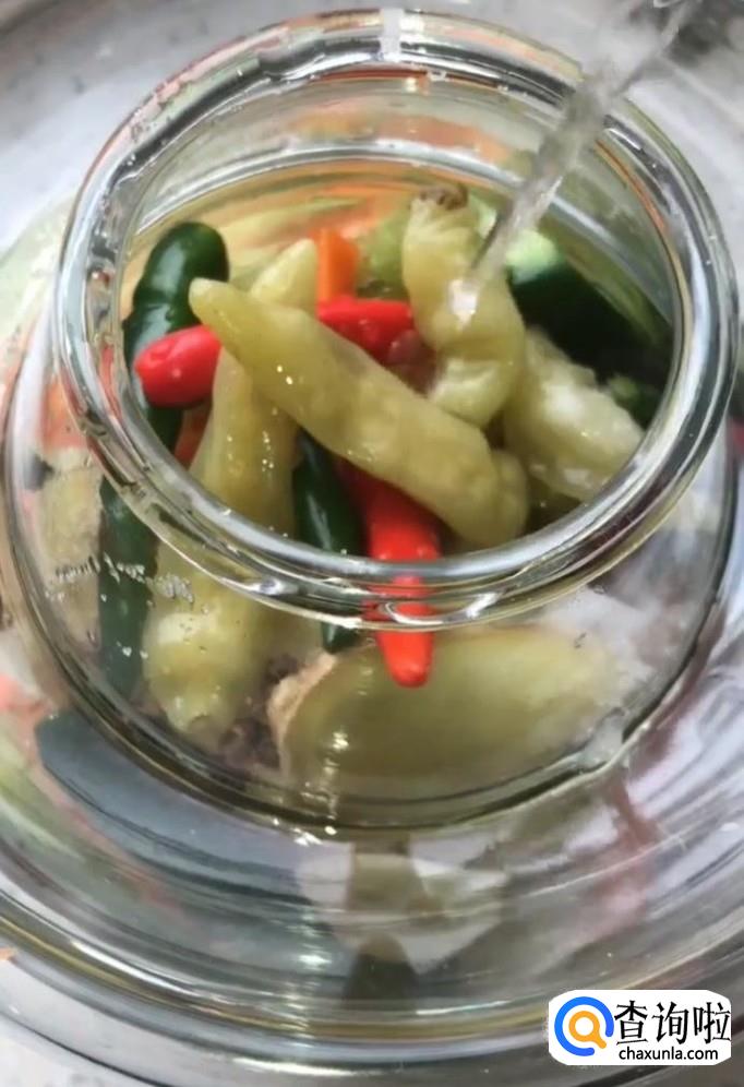 接着我们倒入适量的高度白酒,放凉的白开水,盖上密封罐,腌制一个星期