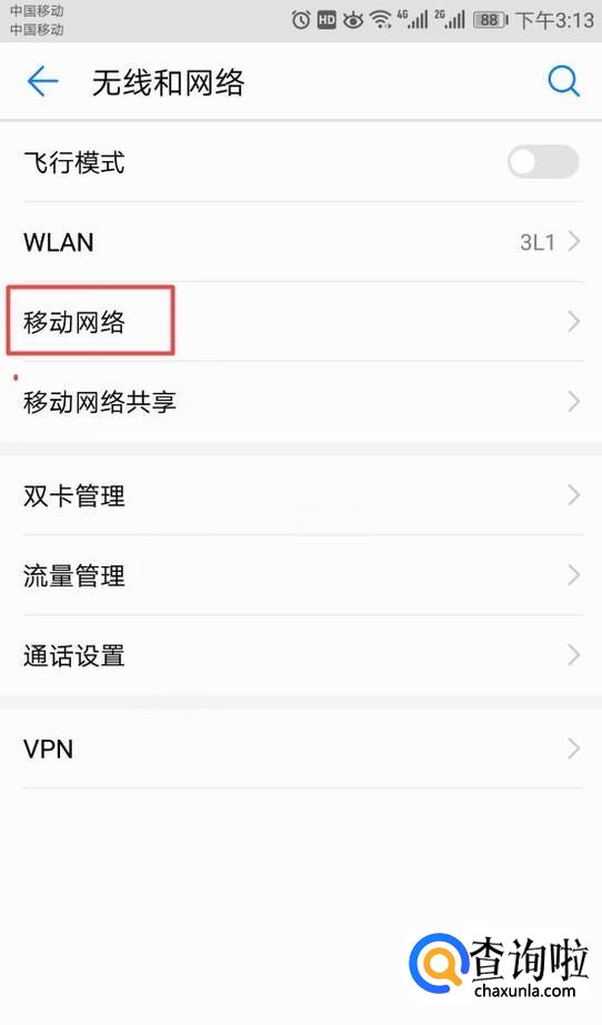 弹出的界面,我们点击移动网络;