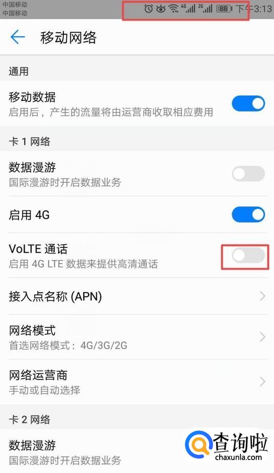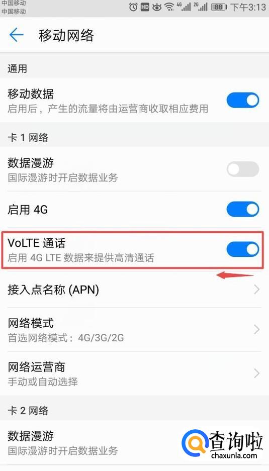弹出的界面,我们将VoLTE的开关向左滑动;