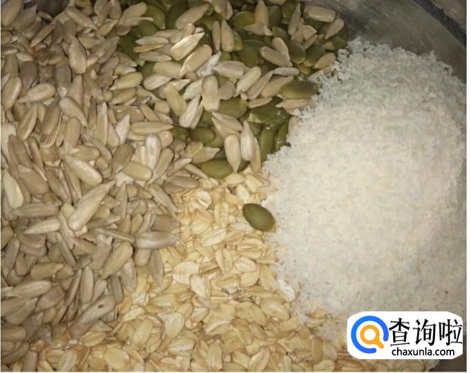 将生麦片和喜欢的坚果混合均匀(也可以不加坚果),并且将步骤1的混合物加进来,一起搅拌均匀。