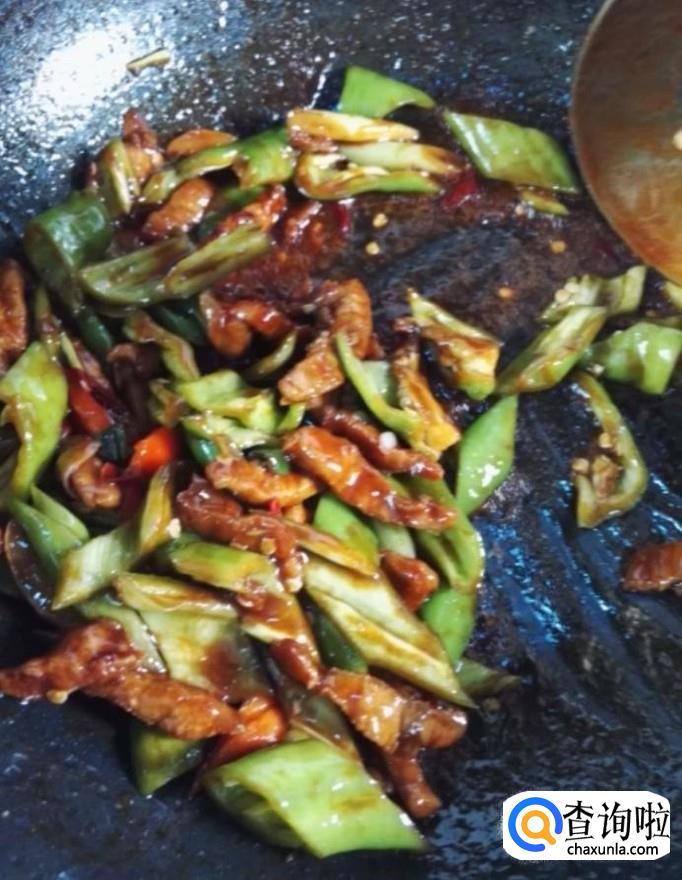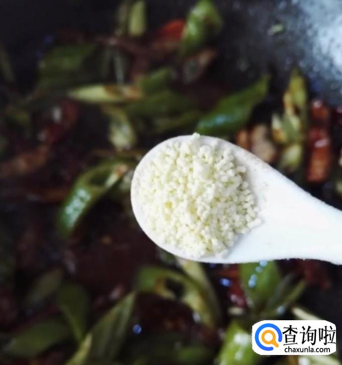 青椒,腊肉,葱,干辣椒,姜,蒜,蚝油,酱油,老抽,鸡精,盐,白糖,