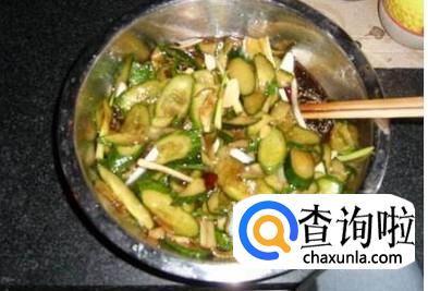 把切好的黄瓜放在锅里,然后再加入适量的食用盐,腌制5个小时,食用盐不能放太多,否则咸菜就太咸了。