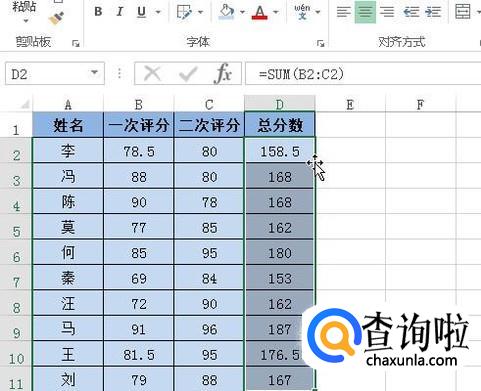 以下图表格数据为例演示操作方法。接下来,我们用SUM函数来计算总分数。