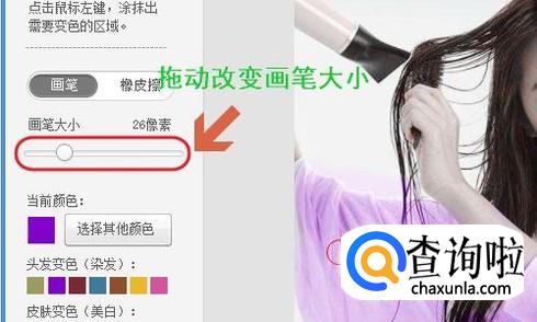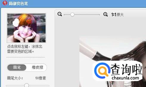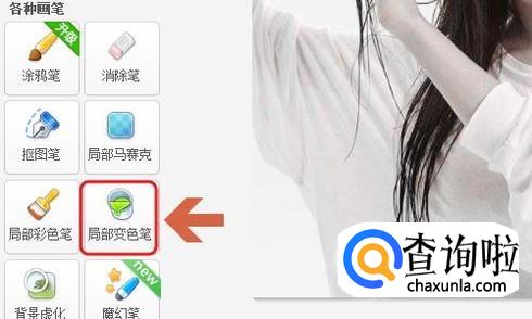 接下来我们点击美女图片左侧的“局部变色笔”,这时页面就切换到了新的页面中,如图二所示...