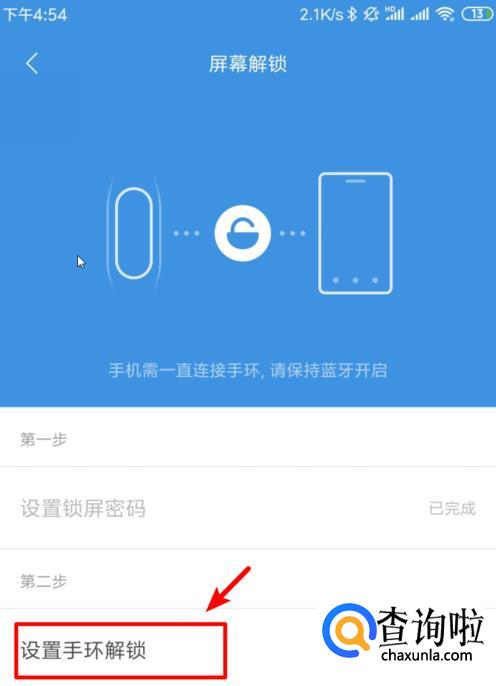 点击【设置手环解锁】;