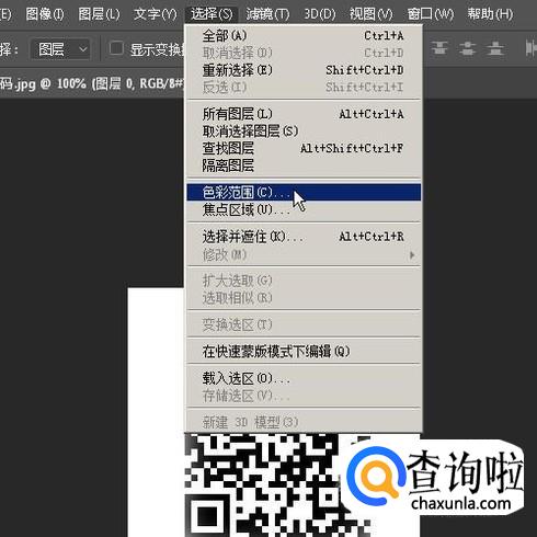 鼠标再移到菜单栏中点击选择菜单,在弹出的菜单中再点:色彩范围