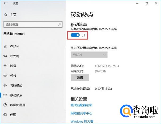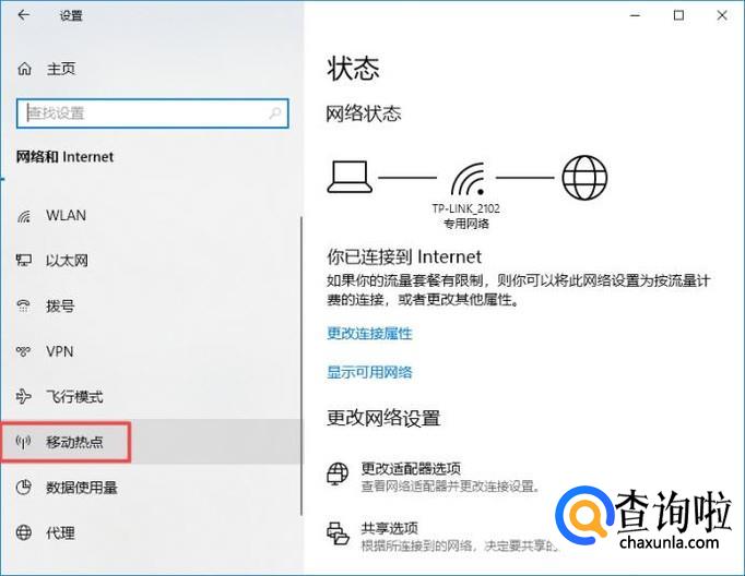 弹出的界面,我们点击移动热点;