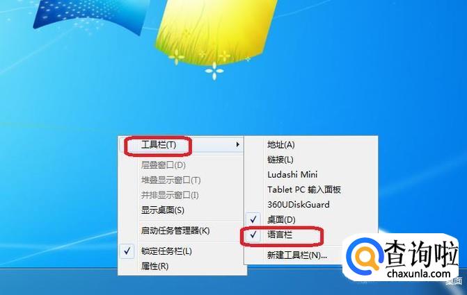 比较常用的方法是,右键单击任务栏,然后如图所示,选择工具栏后,点击勾选上语言栏,此时,输入法就会显示了。