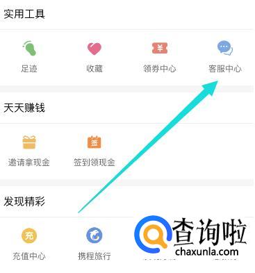 在实用工具一栏里面有一个“客服中心”选项,点击进入。