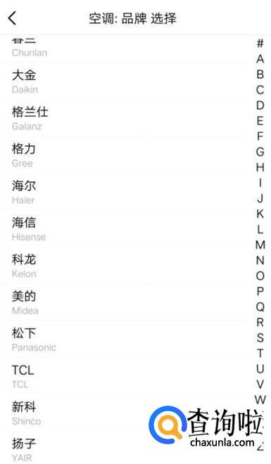 进入之后,选择空调品牌,进入下一页面,如图所示。
