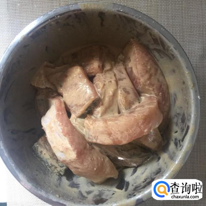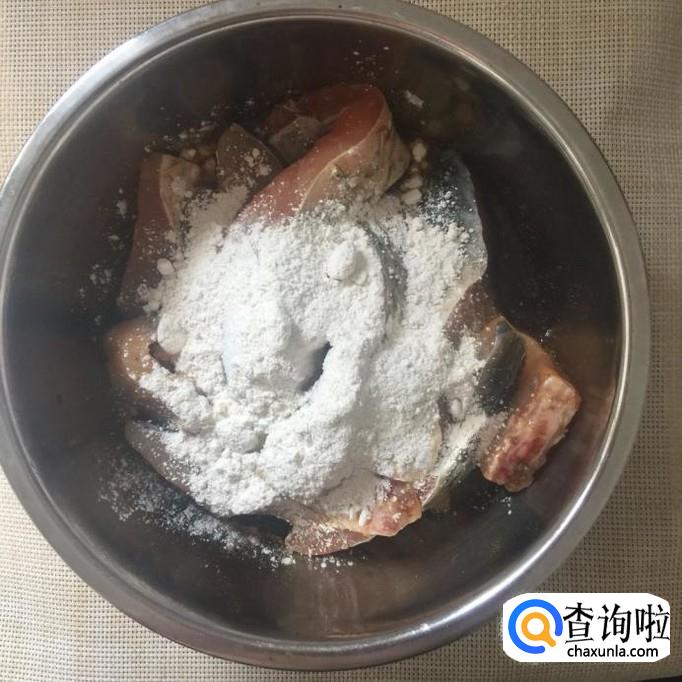 接着倒入适量的地瓜粉裹一下,如下图所示。