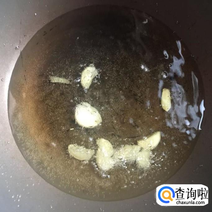 然后锅中放入适量的食用油并倒入适量的蒜头爆香。