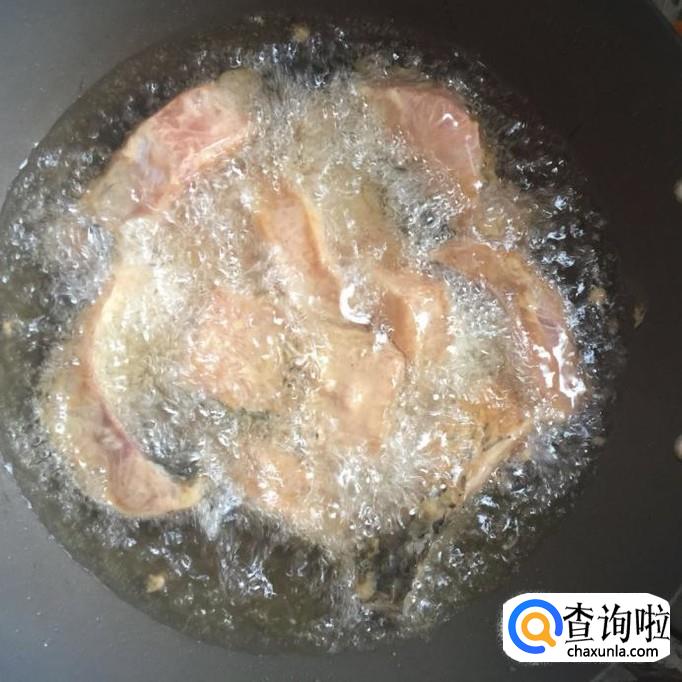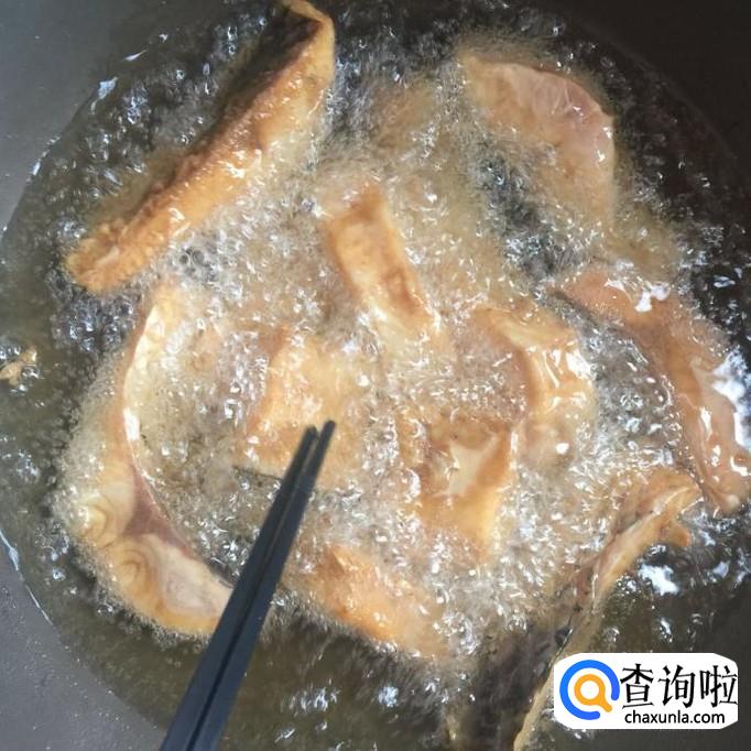 接着把鱼块放入锅中炸五分钟,如下图所示。