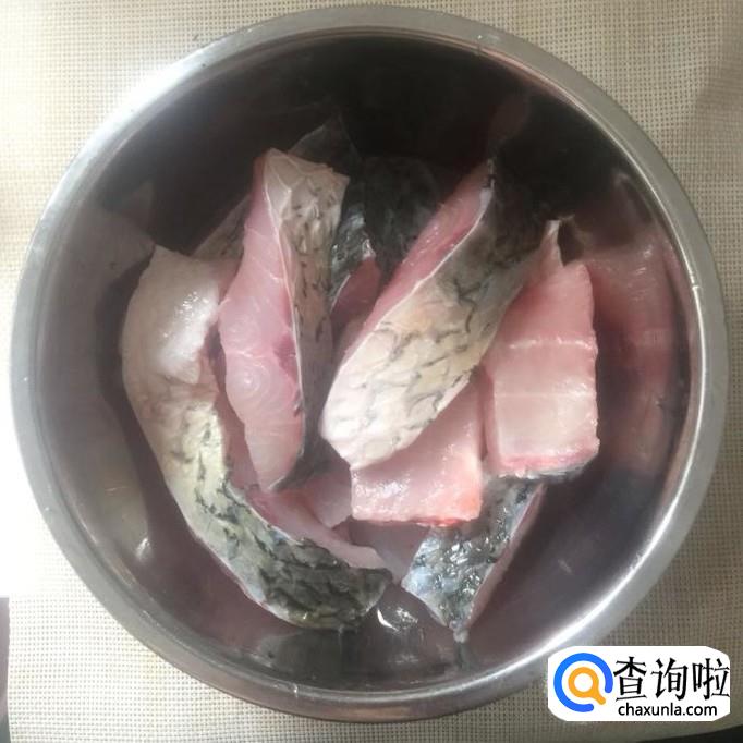 首先将草鱼洗干净,切成块,如下图所示。