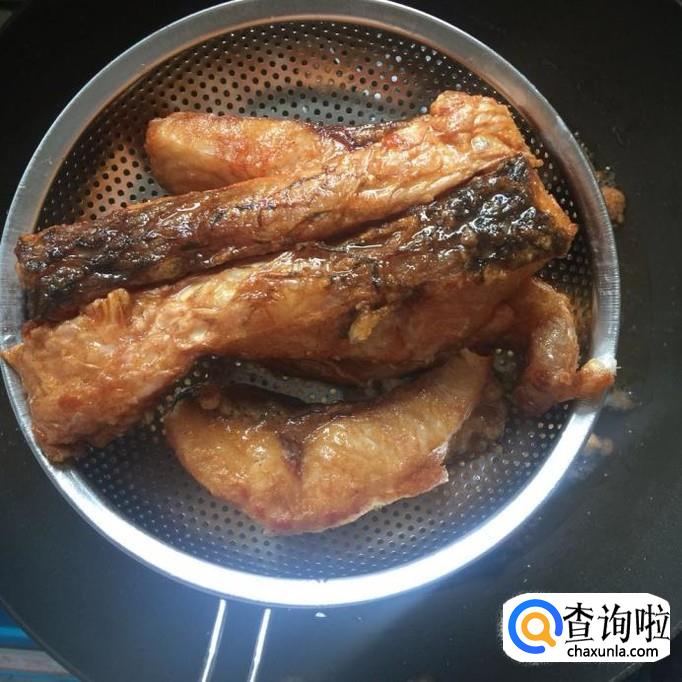 最后用油篓控干鱼块身上的食用油就可以了。
