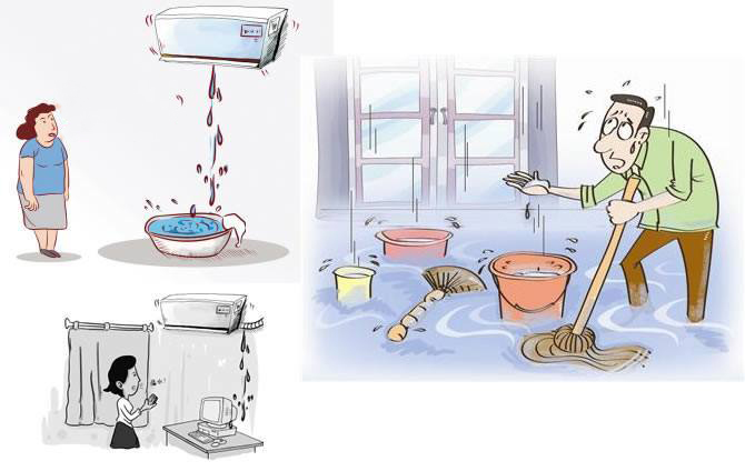 第四种原因:空调本身存在质量而造成的,其中包括水槽破、水槽出水口接管松动或脱落、水槽安装不到位等。这样情况因为是产品质量问题,需要尽早联系生产厂家处理。