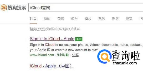首先,在搜狗浏览器中输入iCloud官网并点击回车键,如下图所示。
