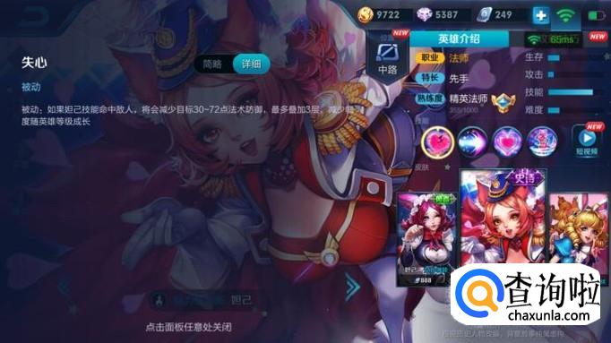 妲己的被动是失心,即妲己释放完技能之后会打破敌方英雄平衡,造成敌人的法术防御降低, 也就是说妲己自带了法术穿透。