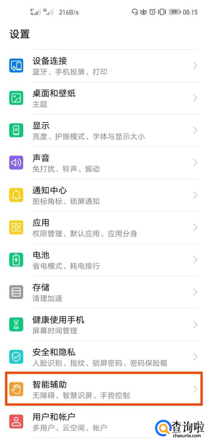 进入手机设置,找到智能辅助。