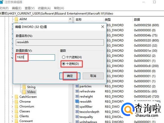 弹出的界面,我们选择10进制,然后输入1920,之后点击确定就可以了,这样就全屏显示了。