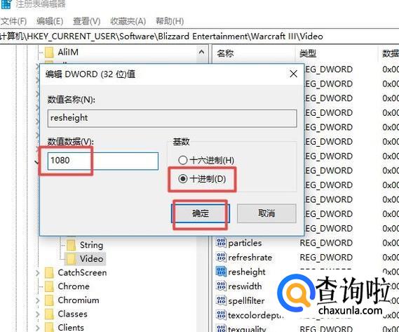 弹出的界面,我们选择10进制,然后输入1080,之后点击确定;