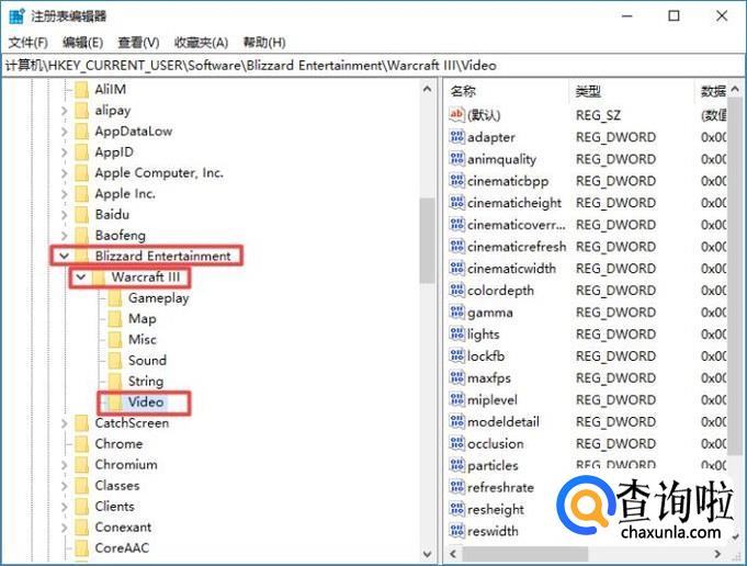 然后我们点击打开Blizzard Entertainment,之后点击打开Warcraft III,然后点击Video;