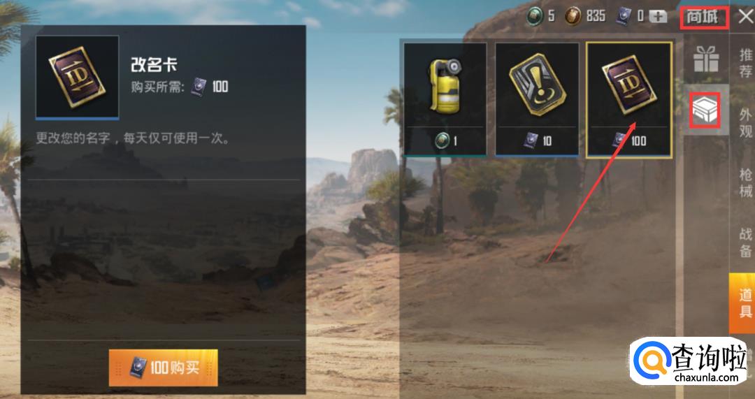 首先要知道在和平精英里面修改名字是需要使用改名卡的,而改名卡要在商城购买。