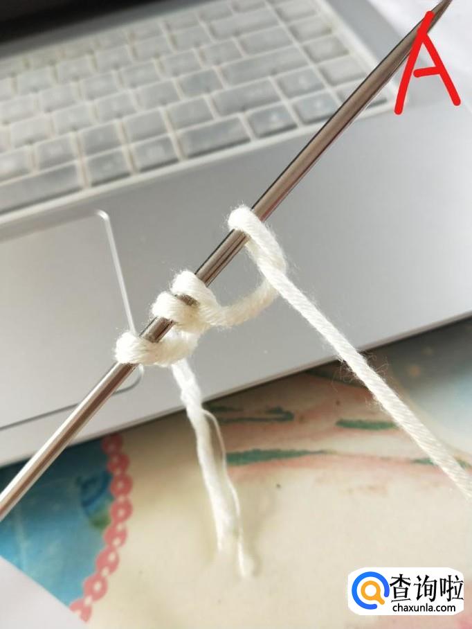左手握住A针,将毛线前端压在A针下,注意在前几针起好前左手最好不要松开,以免第一针滑落