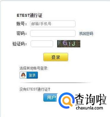 注册成功后进入ETEST界面表明已经注册成功,然后返回主页面,输入账号,密码,验证码之后登录。