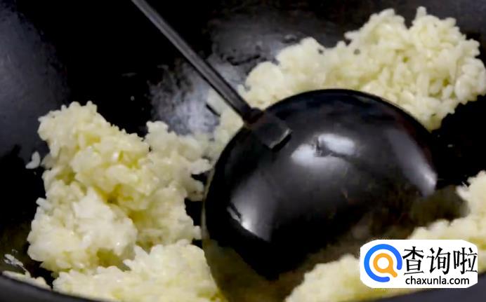 锅里热好油,将隔夜饭倒进去炒散。