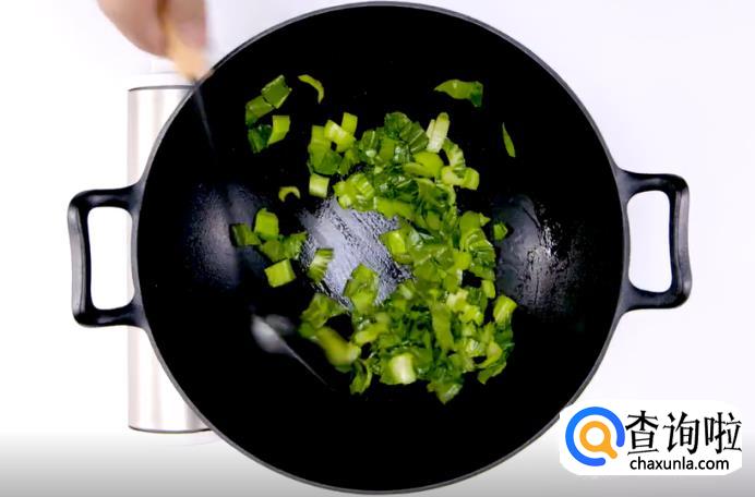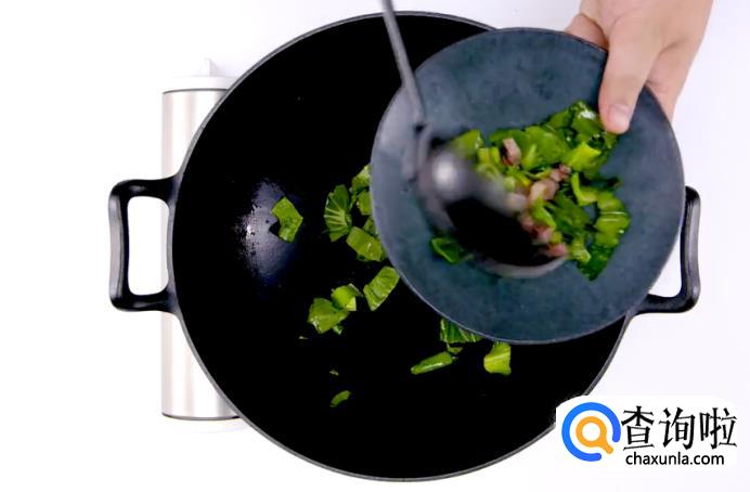 炒好后,将咸肉丁和青菜一起捞出备用。