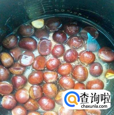 在锅里面加入清水,将板栗加入到里面,如图所示。