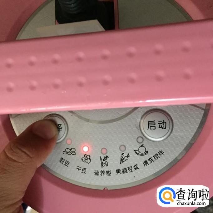 我们今天因为用的是干豆,没有泡过,所以在选择功能的时候要选择 干豆,再点击 启动,就会开始榨了;