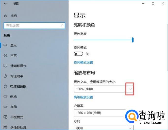 弹出的界面,我们点击更改文本、应用等项目的大小边上的下拉箭头;