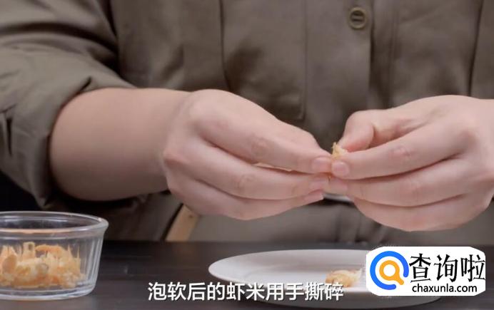 泡软后的虾米用手撕碎。