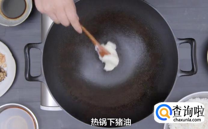 热锅下猪油。
