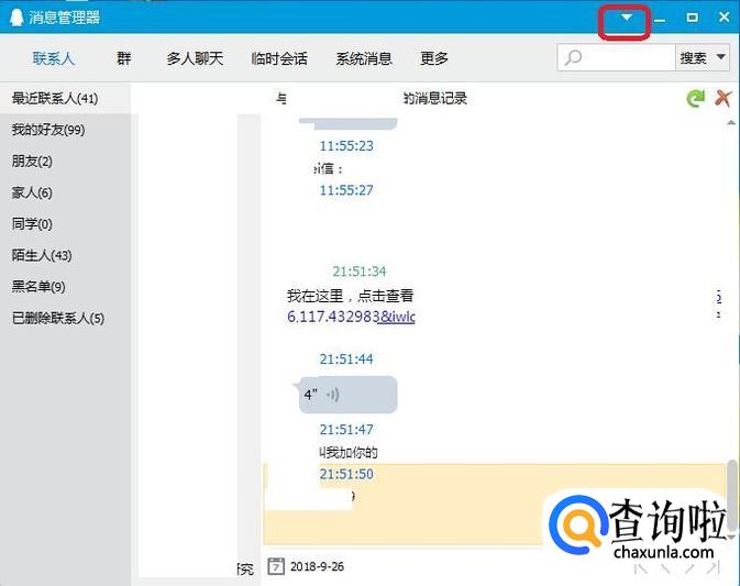 打开消息管理器后,如图所示,点击右上角标记的图标。
