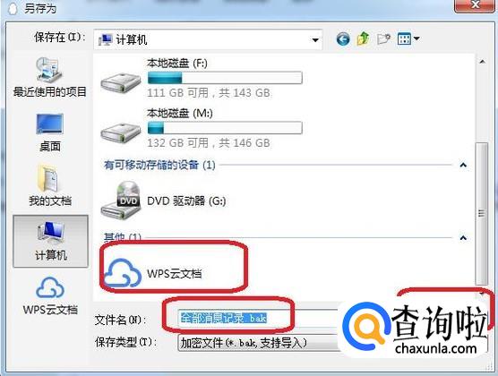 出现另存为选项,我们可以选择另存为U盘,也可以另存为云文档,那样的话,我们打开另一台电脑也能找到导出的聊天记录了。