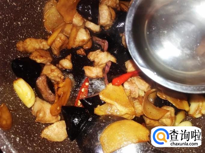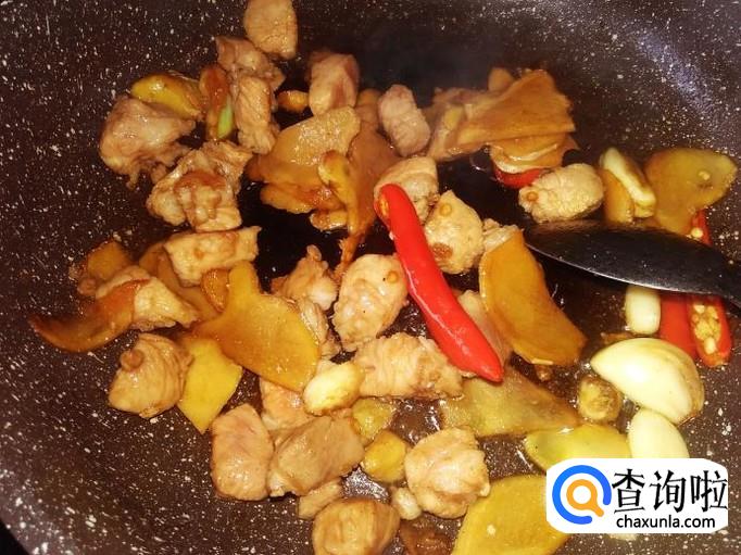 翻炒入味,再加肉丁进去。