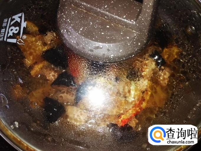 然后洒点水花进去,盖上盖子小火焗1分钟左右。