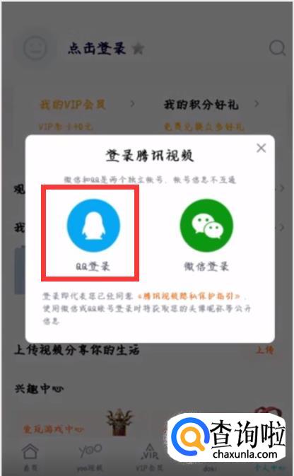 如果是QQ的腾讯VIP就点击“QQ登录”,如果是微信的腾讯VIP就点击“微信登录”。