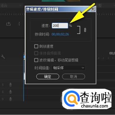 我们把速度参数修改为200%;然后,再点确定。再播放下视频,视频播放速度明显快了很多。