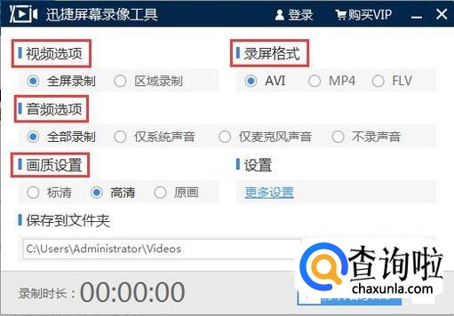 根据自己录制游戏视频的格式进行设置,例如视频选项、音频选项、画质设置、录屏格式等