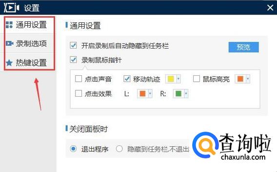 点击软件右侧更多设置按钮,可以设置软件录制的快捷操作以及鼠标指针