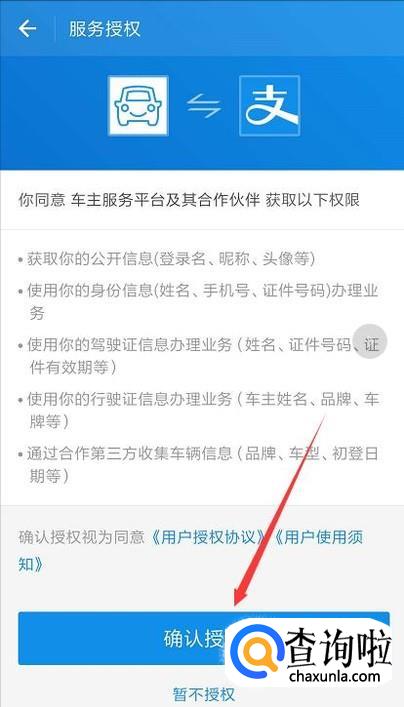 由于这是车主服务平台与其合作伙伴共同的平台,需要获取相关权限,所以选择确定授权;