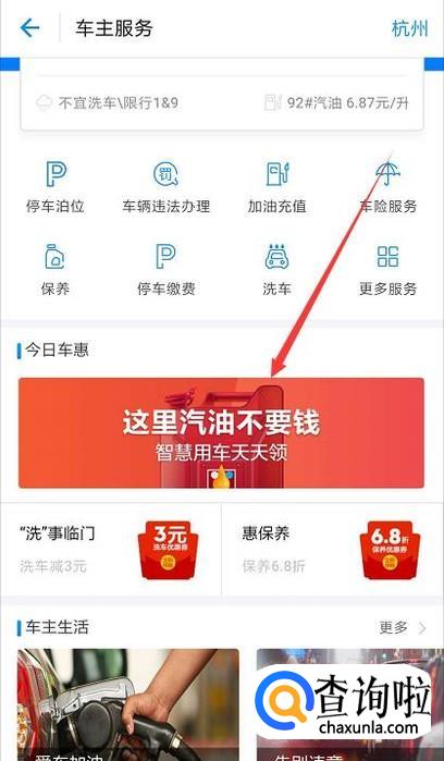 在今日车惠中,选择这里汽油不要钱的活动页面;