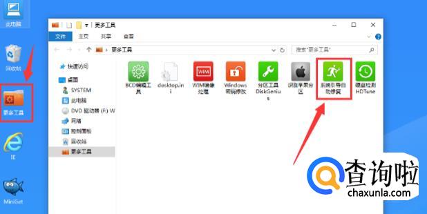 进入快启动win10pe系统桌面后,打开桌面上的“更多工具”文件夹,找到“系统引导自动修复”图标并双击打开,如下图所示。