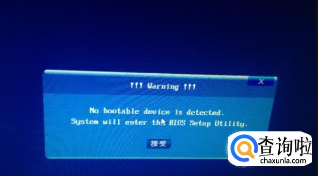 电脑开机显示no bootable device,表示未找到启动磁盘。如果此前未曾修改CMOS启动项,则一般为硬盘出现故障如接触不良或损坏而未能通过开机通电自检,或者是硬盘主引导记录损坏,或者是电脑插入非启动光盘或U盘。