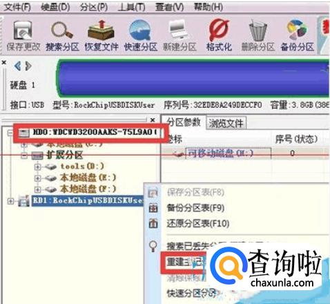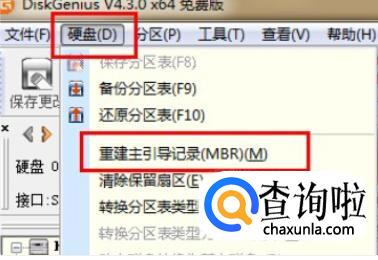 当然,我们也可以利用“DiskGenius分区工具”对引导分区进行修复。在其程序主界面中,右击要修复的分区,从弹出的右键菜单中选择“重建主引导记录”项进行修复。
